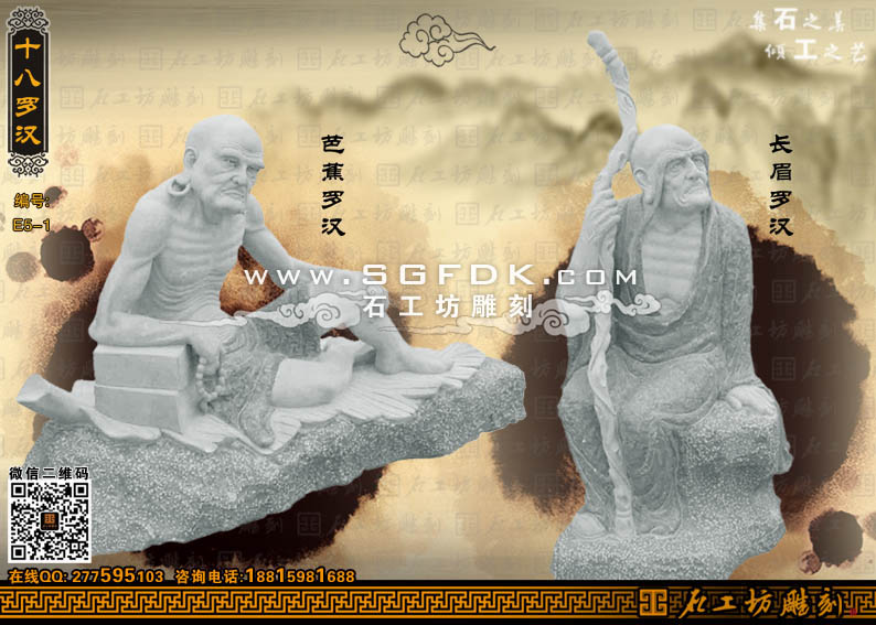 石雕羅漢-芭蕉羅漢:伐那婆斯尊者,長眉羅漢:阿氏多尊者