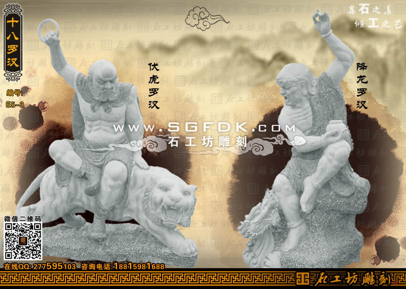 石雕羅漢-伏虎羅漢:彌勒尊者,降龍羅漢:迦葉尊者