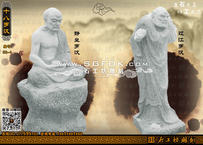 石雕羅漢-靜坐羅漢:諾距羅尊者,過江羅漢:跋陀羅尊者
