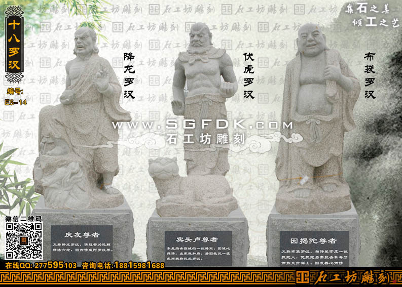 石雕羅漢雕塑-降龍羅漢-伏虎羅漢-布袋羅漢