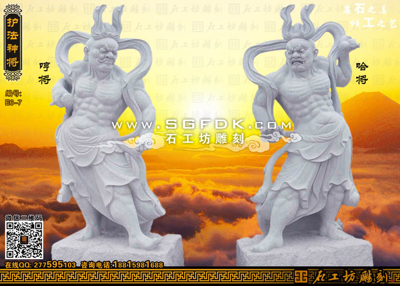 佛教護(hù)法石雕哼哈二將雕塑