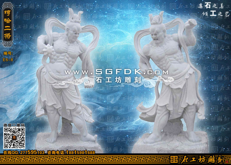 佛教金剛雕塑哼哈二將石雕