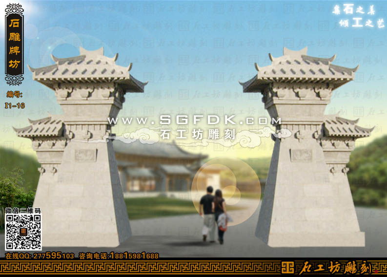 石工坊雕刻工廠其它石牌坊:【單門(mén)石牌坊】 【立柱式牌坊】 【頂蓋式牌樓】 【大型石牌坊】