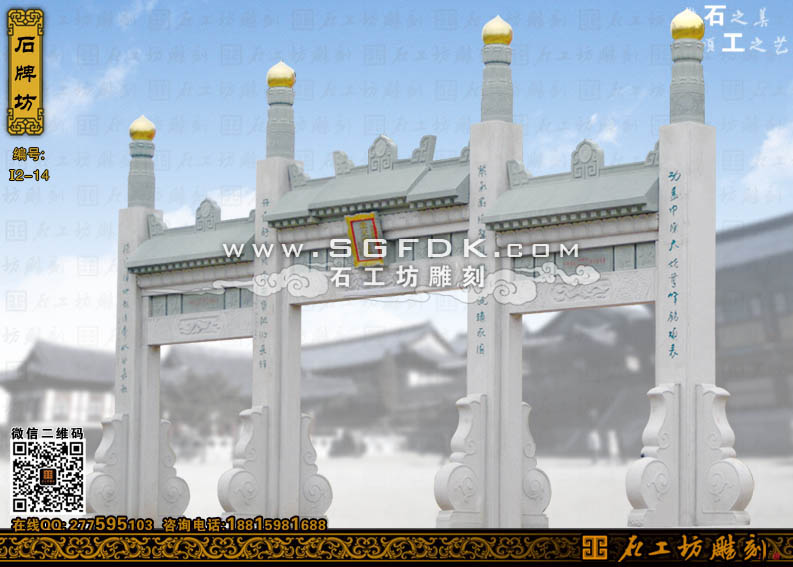 石工坊雕刻工廠其它石牌坊:【單門石牌坊】 【立柱式牌坊】 【頂蓋式牌樓】 【大型石牌坊】