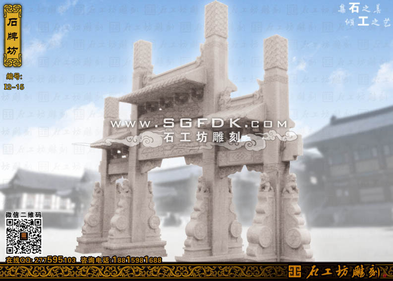 ·石工坊雕刻工廠其它石牌坊:【單門石牌坊】 【立柱式牌坊】 【頂蓋式牌樓】 【大型石牌坊】