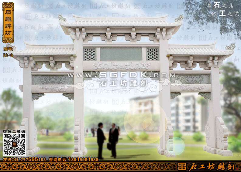 石工坊雕刻工廠其它石牌坊:【單門石牌坊】 【立柱式牌坊】 【頂蓋式牌樓】 【大型石牌坊】