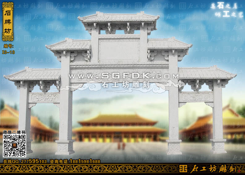 石工坊雕刻工廠其它石牌坊:【單門石牌坊】 【立柱式牌坊】 【頂蓋式牌樓】 【大型石牌坊】