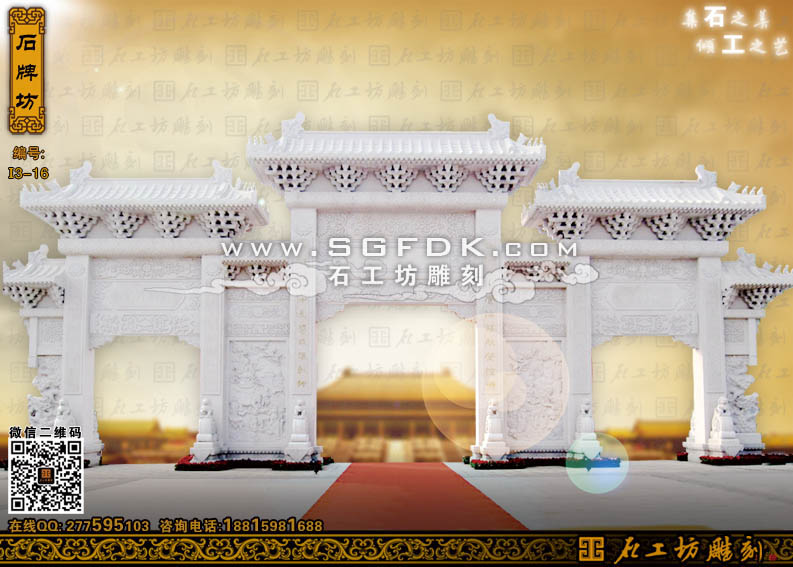 石工坊雕刻工廠其它石牌坊:【單門石牌坊】 【立柱式牌坊】 【頂蓋式牌樓】 【大型石牌坊】