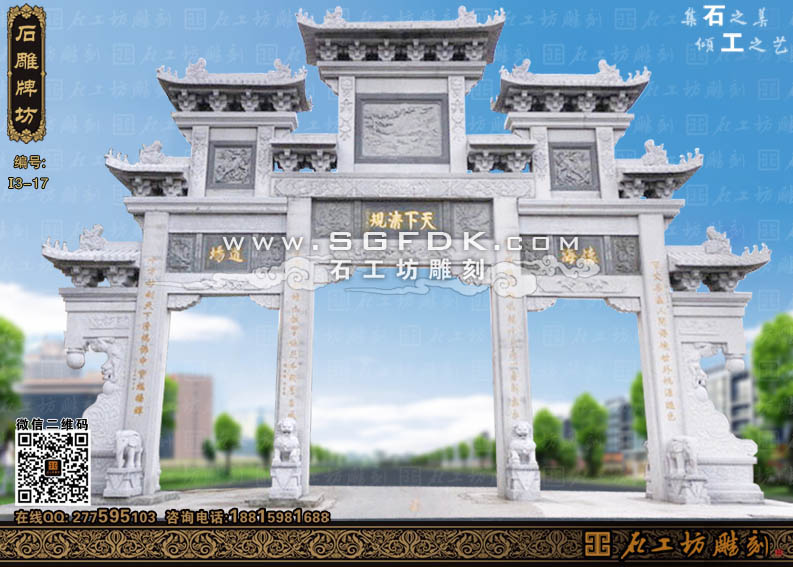 石工坊雕刻工廠其它石牌坊:【單門石牌坊】 【立柱式牌坊】 【頂蓋式牌樓】 【大型石牌坊】