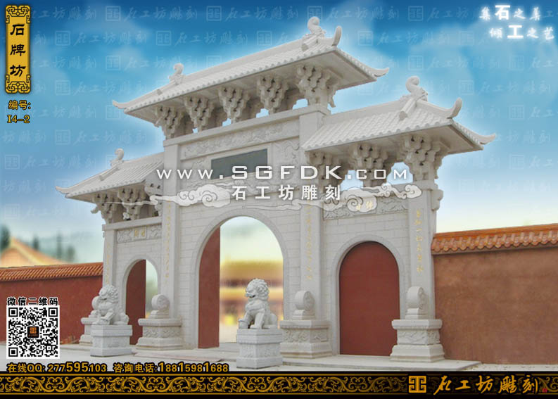 石工坊雕刻工廠其它石牌坊:【單門石牌坊】 【立柱式牌坊】 【頂蓋式牌樓】 【大型石牌坊】