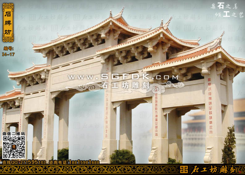 石工坊雕刻工廠其它石牌坊:【單門石牌坊】 【立柱式牌坊】 【頂蓋式牌樓】 【大型石牌坊】