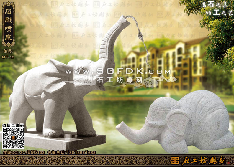 石雕大象噴泉雕塑