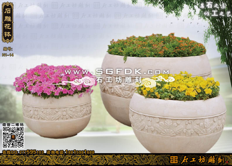 石工坊雕刻工廠其它石花缽石花盆:【