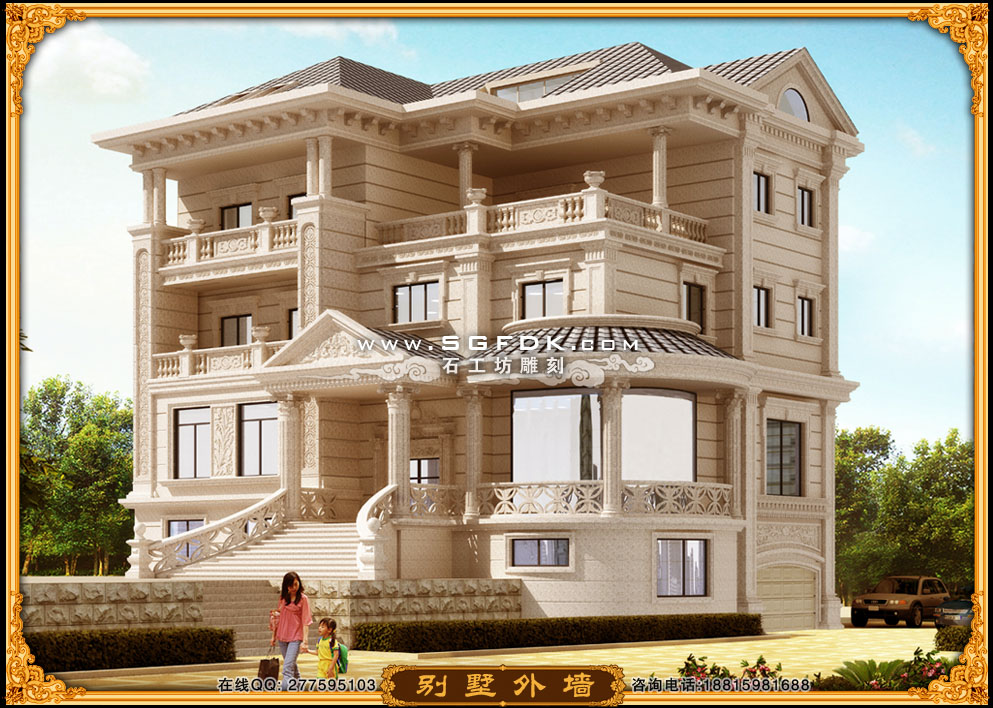 【別墅效果圖設(shè)計(jì)】 【石材外墻施工案例】【歐式大門雕刻】 【歐式浮雕堵】 【石雕羅馬柱】