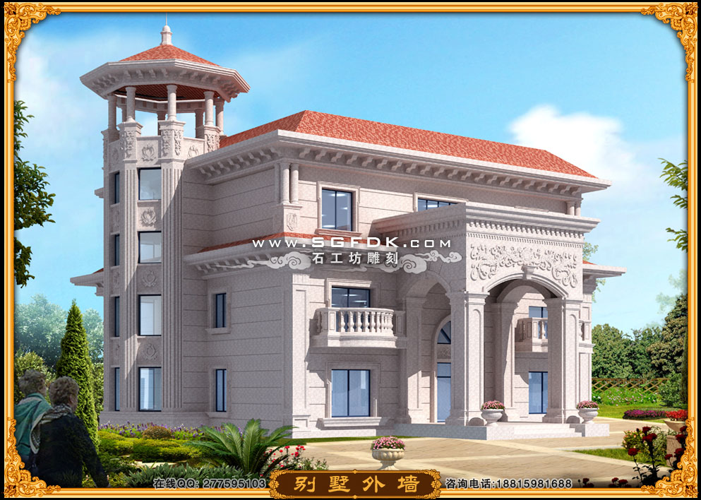 【別墅效果圖設(shè)計】 【石材外墻施工案例】【歐式大門雕刻】 【歐式浮雕堵】 【石雕羅馬柱】