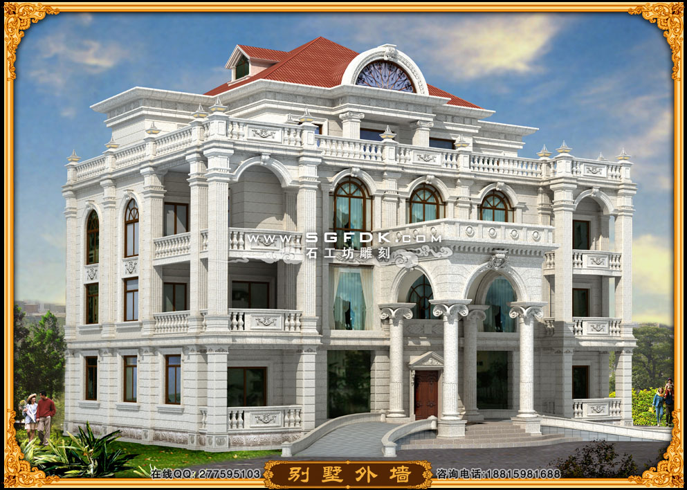 【別墅效果圖設(shè)計】 【石材外墻施工案例】【歐式大門雕刻】 【歐式浮雕堵】 【石雕羅馬柱】