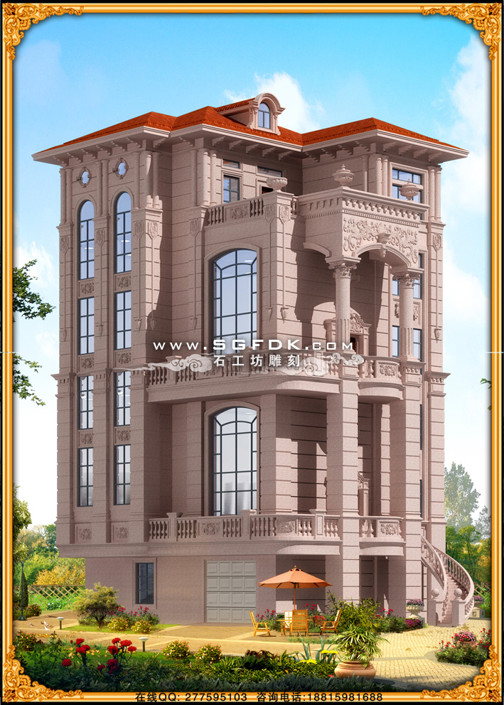 【別墅效果圖設(shè)計(jì)】 【石材外墻施工案例】【歐式大門雕刻】 【歐式浮雕堵】 【石雕羅馬柱】