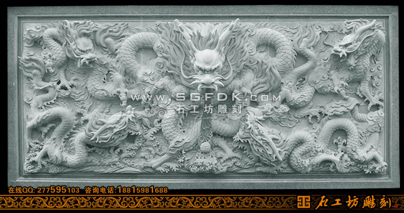 青石浮雕五龍堵雕刻