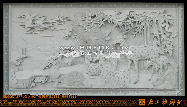 石頭浮雕鹿竹同春雕刻