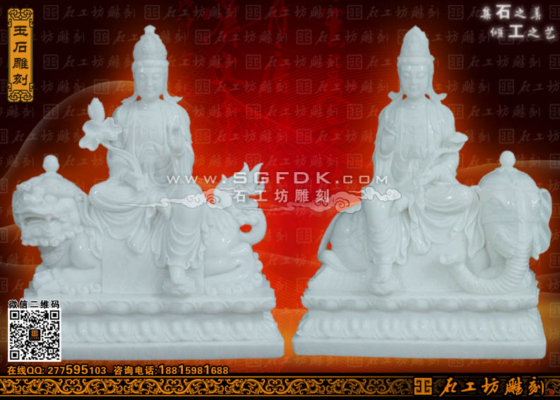 文殊普賢菩薩玉石雕刻