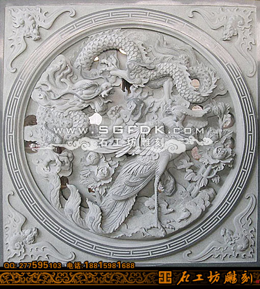 石雕窗套龍鳳呈祥圖片