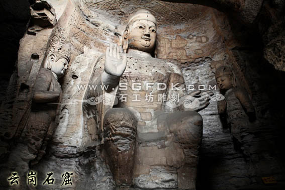 追溯中國(guó)佛寺供像的源流,唐代以前的很多石窟佛寺當(dāng)中所供奉的佛像,一般正中的主尊佛像多為單尊,兩旁則為協(xié)侍。主尊佛像形體高大,兩旁的脅侍則相對(duì)較小之。至于三大像并列的供奉方式,以云崗第十窟與十七窟所供的三世佛為最具代表的遺例。就木造佛寺而言,晚唐以后逐漸流行于一殿一佛的格局,同時(shí)并立多尊佛像同為主尊的供奉式樣,此種供奉式樣一直沿襲下來(lái),如唐代五臺(tái)山佛光寺在東大殿供三佛同為主尊,山西大同下華嚴(yán)寺亦供奉三佛。而受到密教?hào)|傳的影響,金元之際則開(kāi)始流行供五尊像者。此后,只要寺院規(guī)模夠大,必供奉三尊佛或五尊佛為主尊,明代以后,更成定制。 (資料來(lái)源:石工坊雕刻)