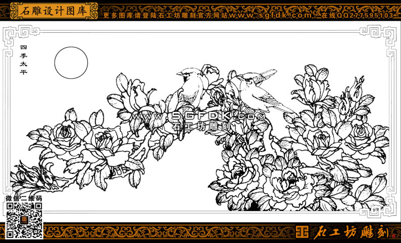 花鳥白描圖四季太平