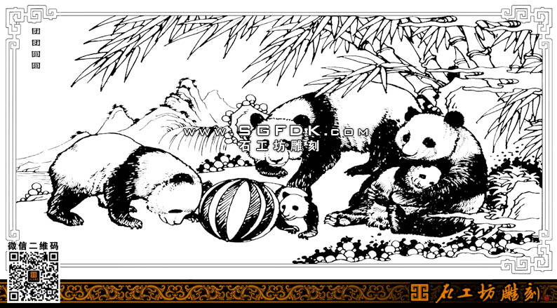石雕圖紙設計團團圓圓白描圖