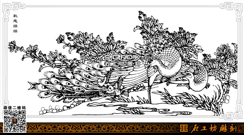 石雕設(shè)計(jì)圖庫-孔雀白描圖