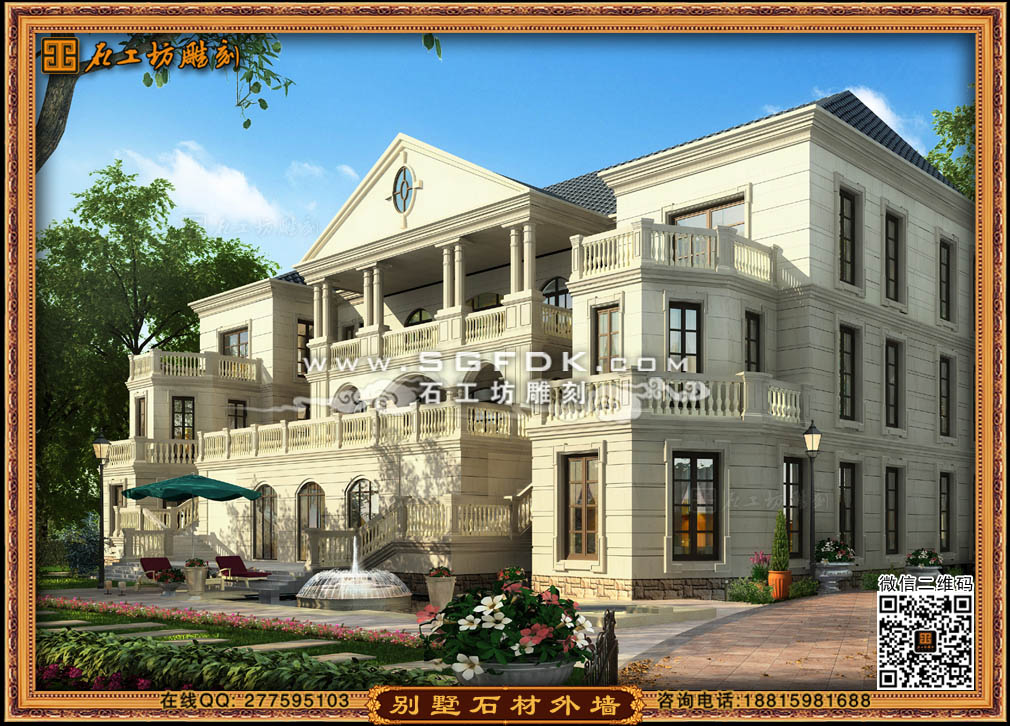 【別墅效果圖設(shè)計(jì)】 【石材外墻施工案例】【歐式大門雕刻】 【歐式浮雕堵】 【石雕羅馬柱】