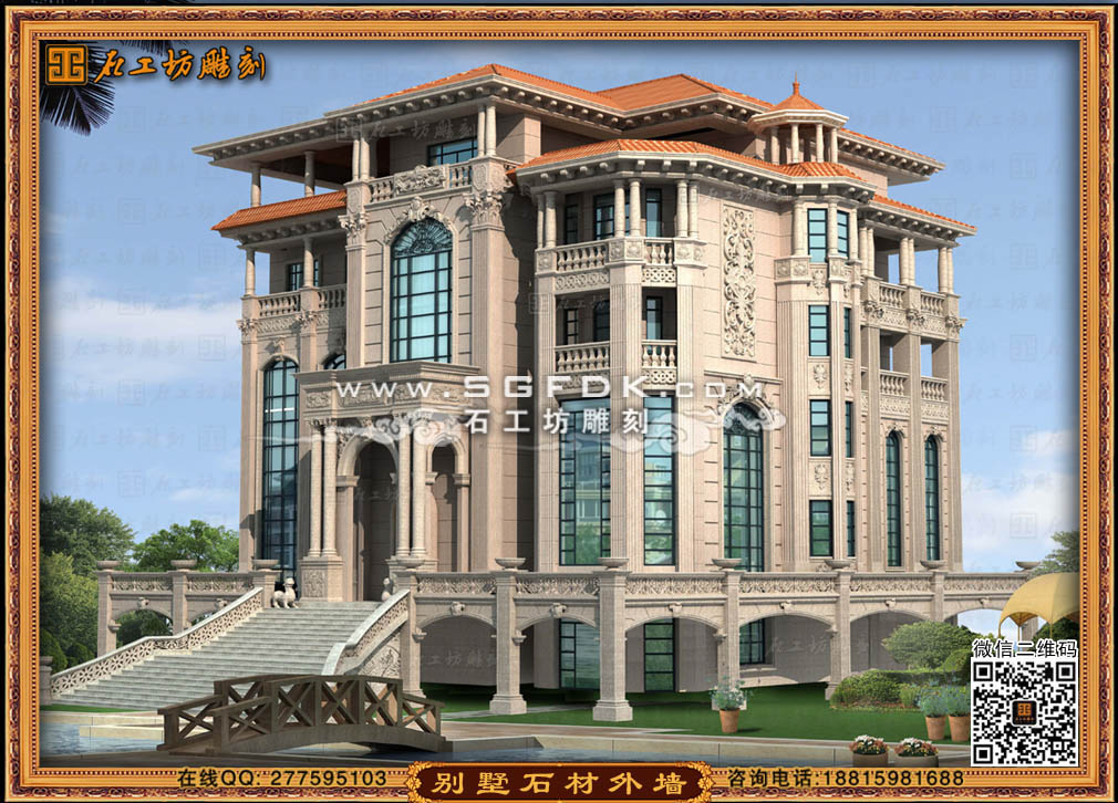 別墅效果圖設(shè)計(jì)】 【石材外墻施工案例】【歐式大門雕刻】 【歐式浮雕堵】 【石雕羅馬柱