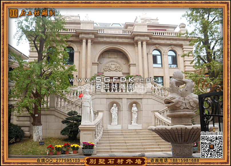 【別墅效果圖設(shè)計】 【石材外墻施工案例】【歐式大門雕刻】 【歐式浮雕堵】 【石雕羅馬柱】
