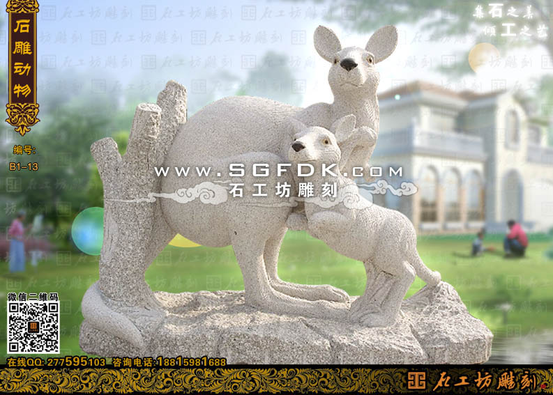 石雕袋鼠雕塑一般都常放置于公園、園林景觀等地方,不但可以起到裝飾和美化我們生活空間的作用,更加可以起到教育警示的作用。時刻提醒著我們珍愛地球、保護環(huán)境、保護動物的環(huán)保意識。