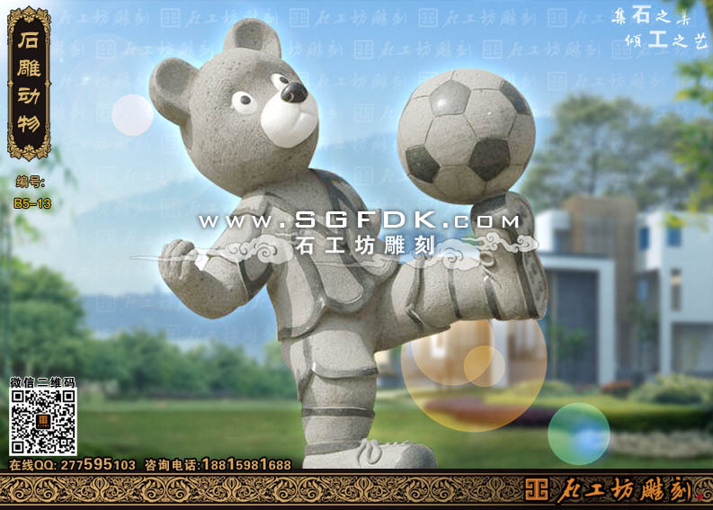 城市雕塑石雕小熊踢球