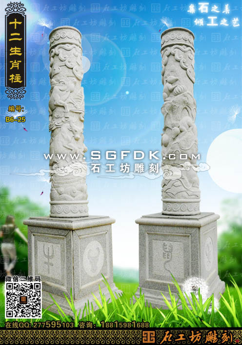 石雕柱生肖柱鼠柱牛柱