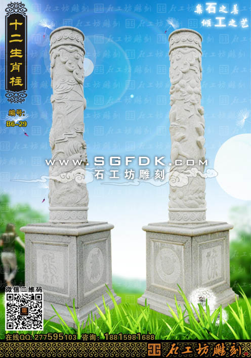 石雕柱生肖柱猴柱雞柱