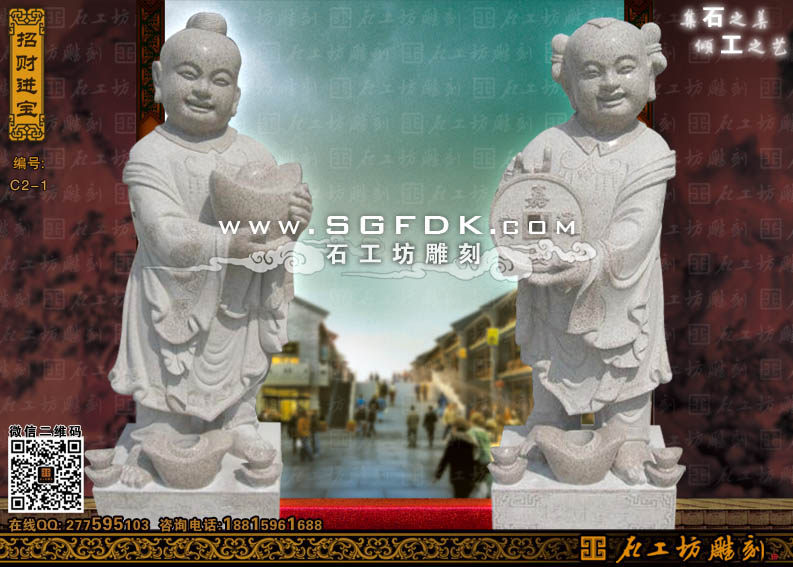 石雕童男童女招財進(jìn)寶