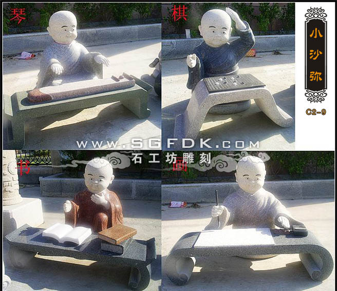 景觀石雕小和尚琴棋書畫雕塑