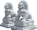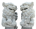 招財(cái)進(jìn)寶的石雕獅子