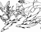 花鳥白描圖年年有余