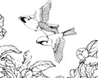 花鳥白描圖花開富貴